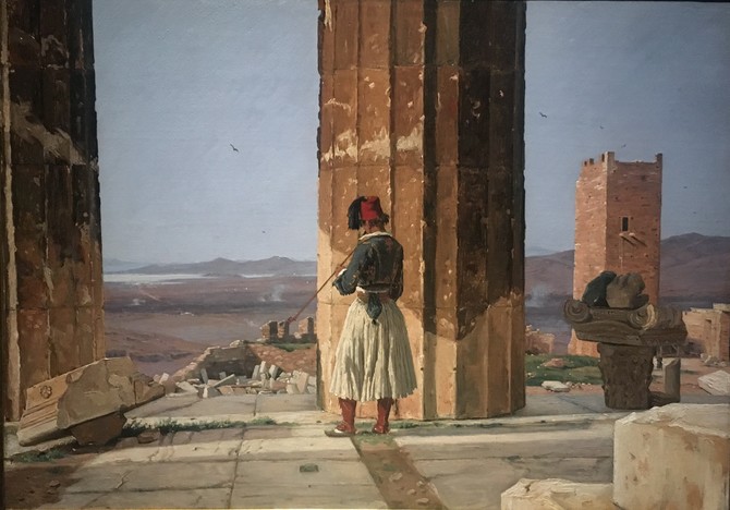 Koldt men deiligt Veier, jeg malede en Figur paa mit Studie paa Acropolis ogsaa det venetianske Taarn i den senere græske Historie bekjendt, da det var derifra at Gurra om Natten nedstyrtede Odyseu...